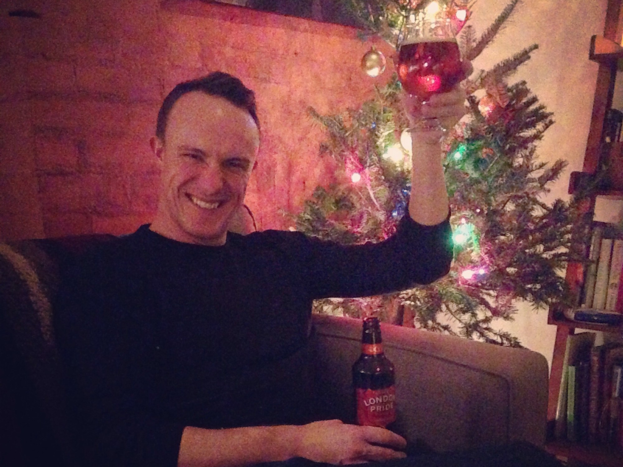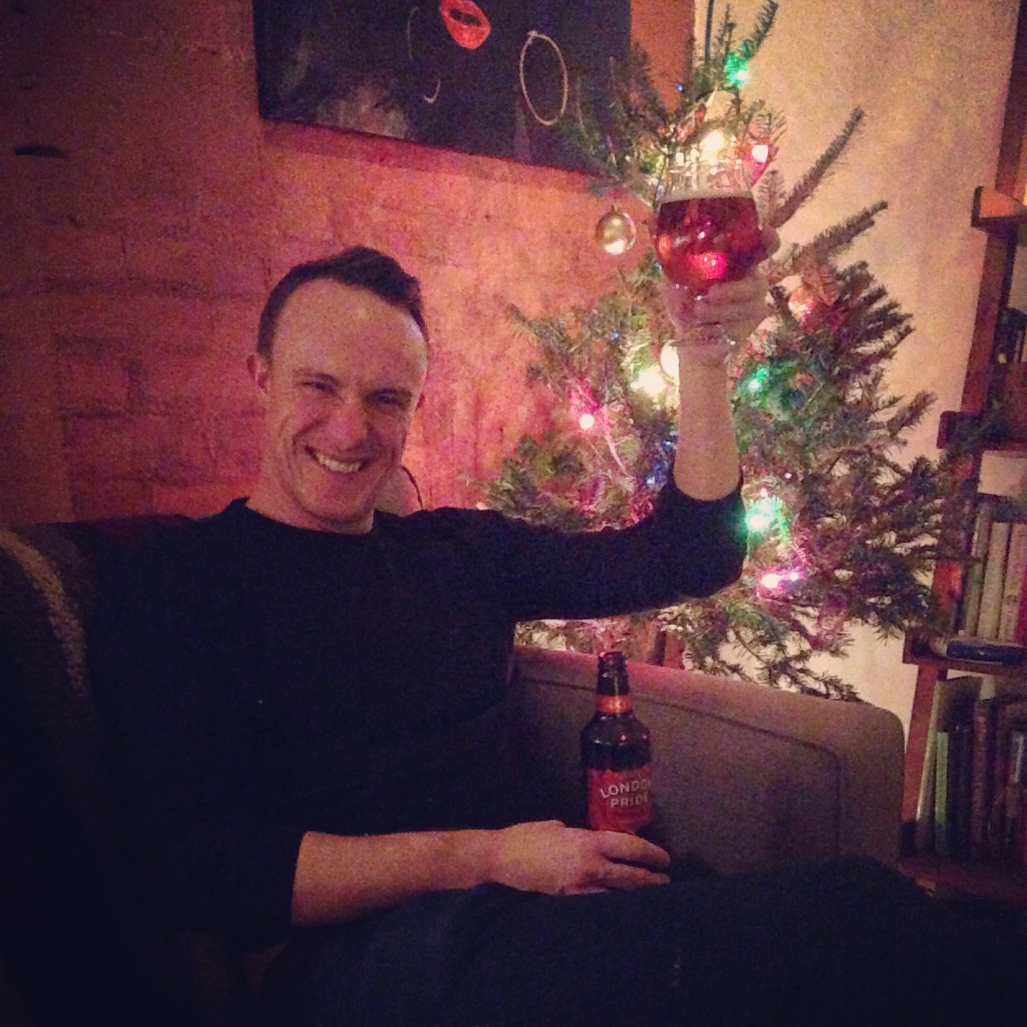 Of course, one can’t trim a tree alone without a refreshing beer to wash down the shame of it all. And what better than the classic English ale, “London Pride”, made by older-than-Canada brewery Fuller’s. This Amber-coloured ale is serving all kinds of malt characteristics (toasted brown bread, caramel, toffee, vanilla) and is simultaneously so quaffable that one flies through a bottle without taking a breath (by “one”, I mean “Edison”, obviously) and so delectable that one wants to savour each sip. Savour the second one, that’s what I always say.