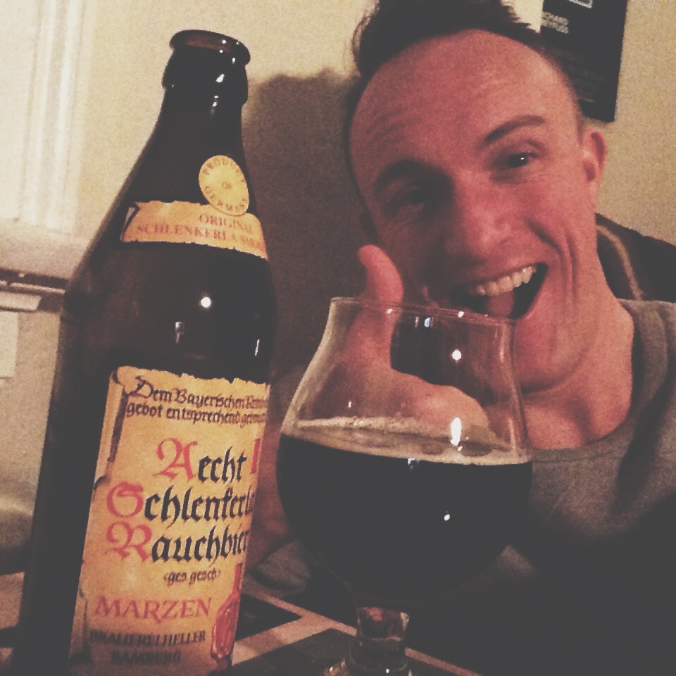 Tonight I’m tasting a beer from Germany. Frankly, I don’t know what to expect. The label on top says “Original Schlenkerla Smokebeer” (I assume Schlenkerla is a place…?) And I know that “Rauchbier” is a style of making beer where they take the malted barley and kiln it over beach-wood or some kind of open fire to get that smoked flavour.