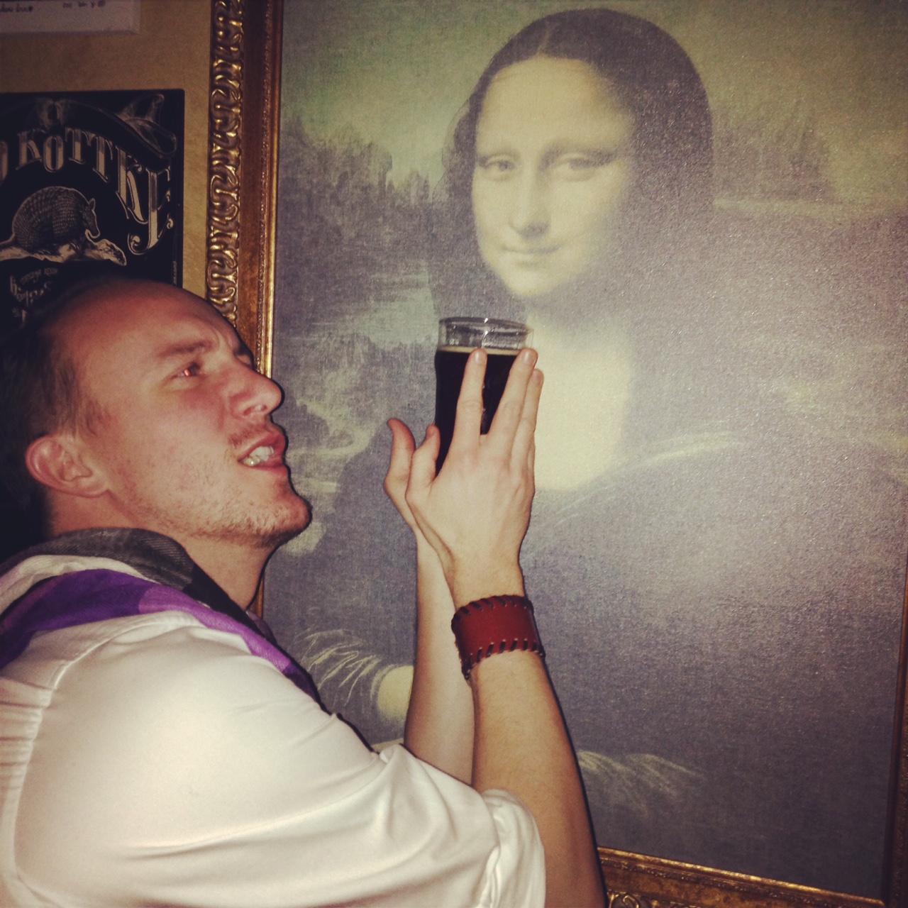 The bar is a brilliant spot, tiny and jam-packed with people. Hundreds of framed photos and paintings clutter every inch of the walls (not that you can really see what’s on them, the lighting is mostly provided by minuscule table lamps that must have 10w lightbulbs). The bar is long and lined with taps pouring a spectacular selection of craft brews.